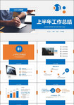蓝黄简约清爽大气上半年工作总结年中总结PPT模板