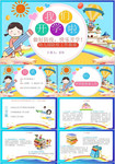 蓝色卡通风格做好防疫快乐开学我们开学啦PPT模板