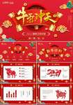 新年祝福中国风红金牛气冲天视频片头2021新年工作计划工作总结PPT