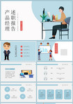 青色水彩简约商务产品经理述职报告PPT