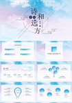 渐变水彩唯美小清新诗和远方天空工作总结汇报PPT模板