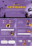 紫色趣味卡通主题万圣节活动策划PPT模板