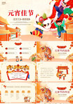 黄色红色卡通国潮风手绘插画元宵节主题班会动态PPT模板