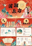 红金色烫金边插画新国风国潮东方PPT模板