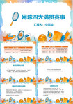 手绘运动简约风网球四大满贯赛事网球PPT模板