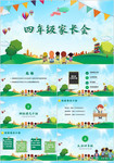 绿色清新水彩卡通四年级家长会PPT模板