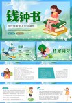 绿色卡通钱钟书人物介绍说课课件PPT模板