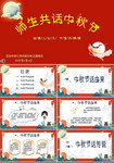 红色卡通中秋主题班会PPT师生共话中秋节