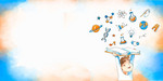 学习背景教育背景卡通背景卡通背景水彩学生学校学习开学季背景
