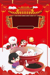 可爱卡通汤圆2019猪年新年元宵节快乐海报红色背景素材