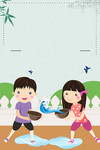 清新卡通手绘男孩女孩泼水节傣族文化传统民俗旅游宣传海报背景