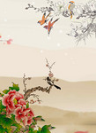 中国风水墨画彩色花卉平面广告