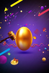 砸金蛋彩带金蛋喷花紫色小球简约喜庆促销2019新年促销海报背景