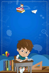 边框蓝色书本人物卡通冲刺高考倒计时励志海报背景