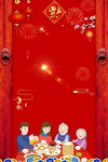 2019新年喜庆红门灯笼烟花猪年除夕夜年夜饭海报红色背景