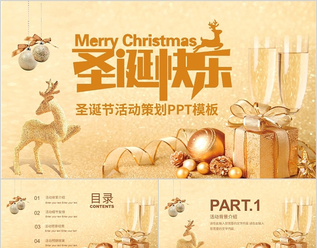 包站长提供金色大气圣诞节活动策划PPT模板免费下载,作品有版权,可商用,文字图片等主体内容皆可修改,更多关于圣诞节PPT下载,就来包站长。