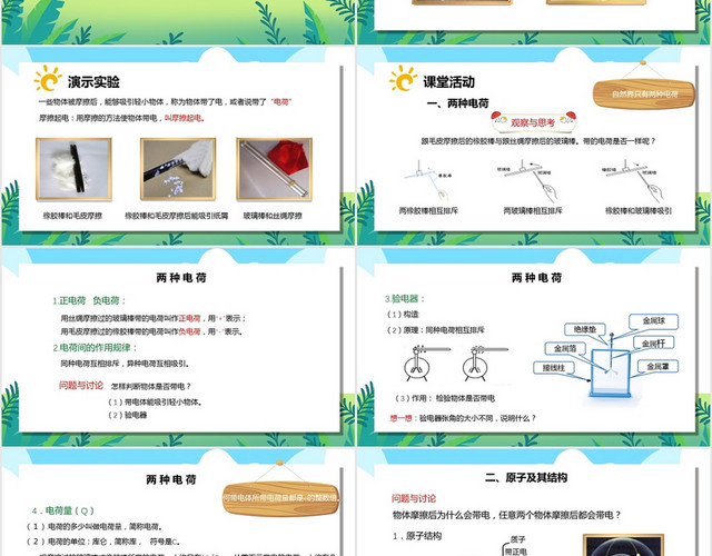 绿色卡通人教版九年级物理两种电荷教育类PPT课件电路PPT
