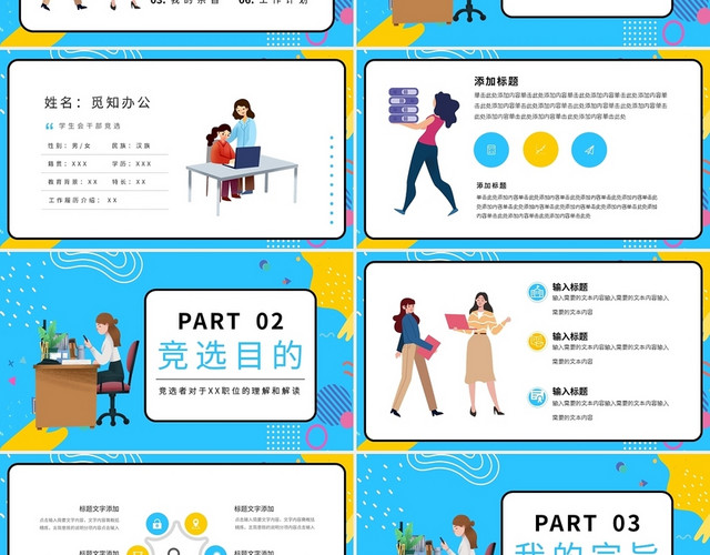包站长提供蓝色卡通学生会干部竞选PPT模板免费下载,作品有版权,可商用,文字图片等主体内容皆可修改,更多关于其他课件下载,就来包站长。