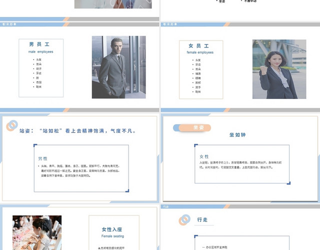 包站长提供蓝橙色简约清新风办公室礼仪及行为规范PPT培训模板免费下载,作品有版权,可商用,文字图片等主体内容皆可修改,更多关于其他课件下载,就来包站长。