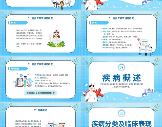 2022蓝色插画医疗医院医生护士妊娠期高血压护理查房汇报培训